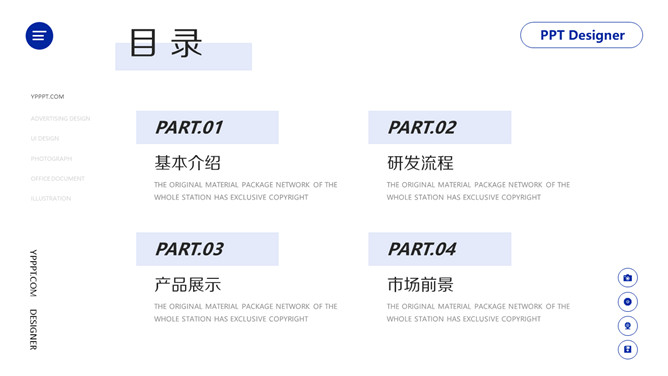 简约企业产品发布会PPT模板。一套公司企业产品发布会产品介绍模板,简约设计,清爽蓝色主色。包括基本介绍、研发流程、产品展示、市场前景等部分。