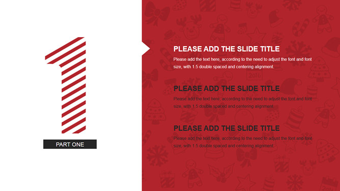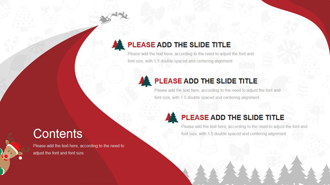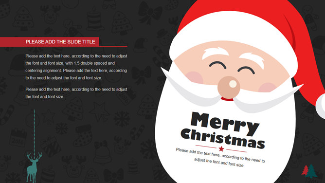 卡通扁平化圣诞节PPT模板。圣诞节主题幻灯片模板,喜庆红色主色调,扁平化设计风格,卡通圣诞老人等圣诞元素。