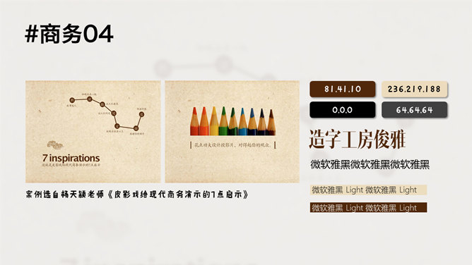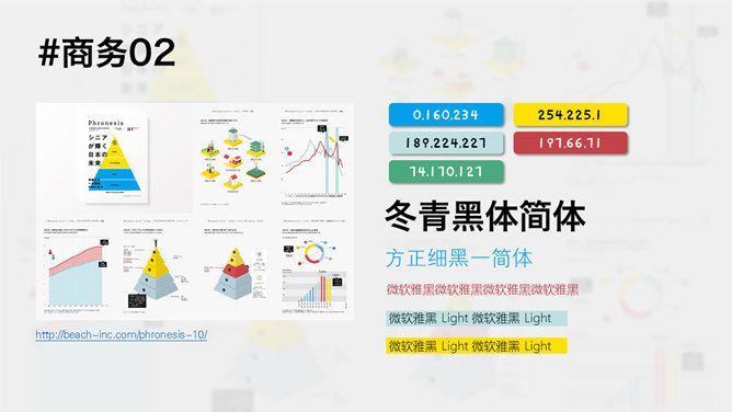 PPT配色使用手册配色教程。通过分析借鉴其他平面设计和网页设计,提取或商务或活泼的配色方案。