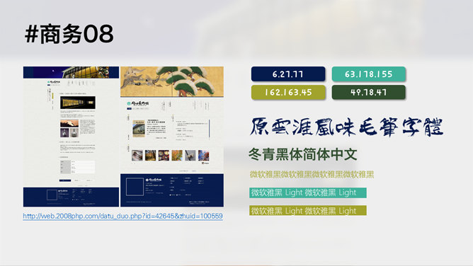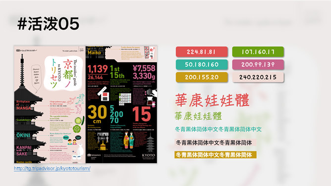 PPT配色使用手册配色教程。通过分析借鉴其他平面设计和网页设计,提取或商务或活泼的配色方案。
