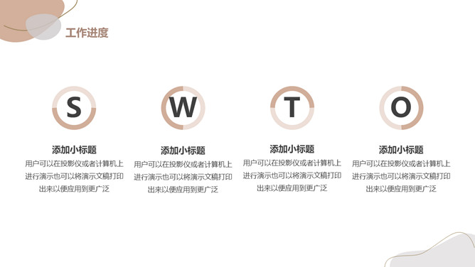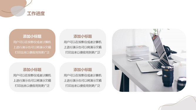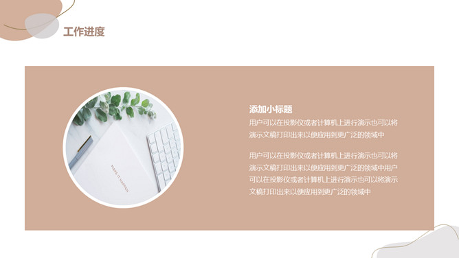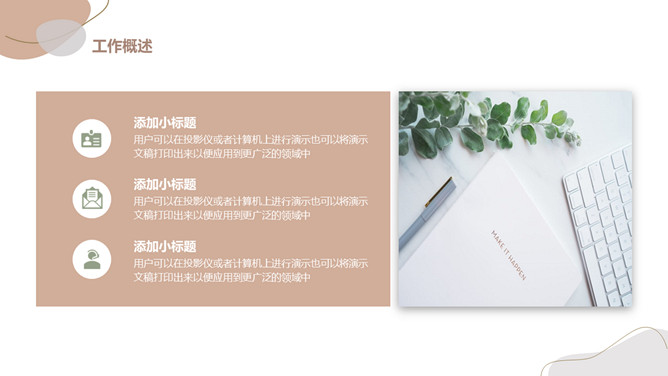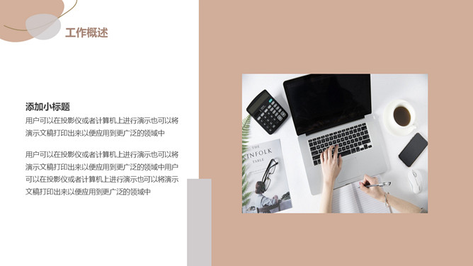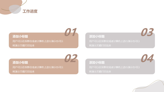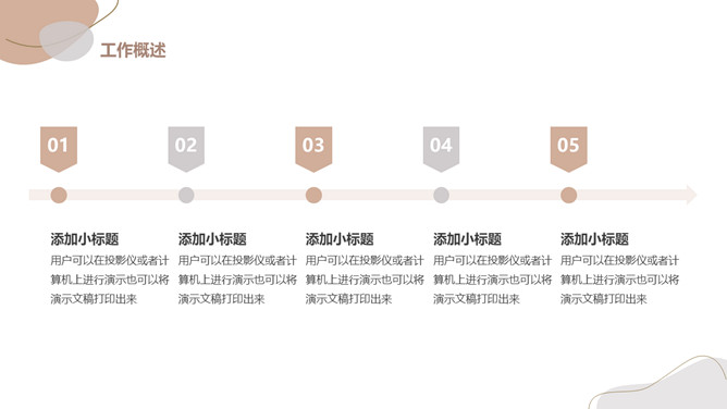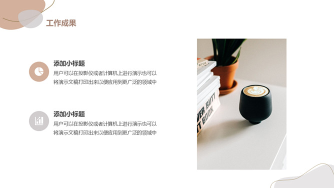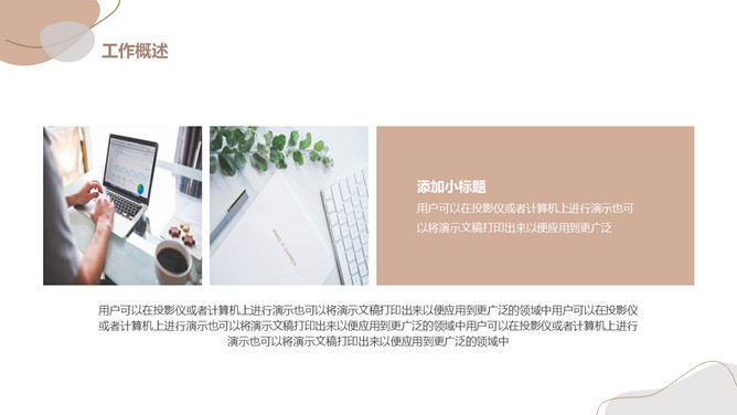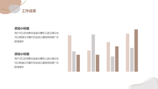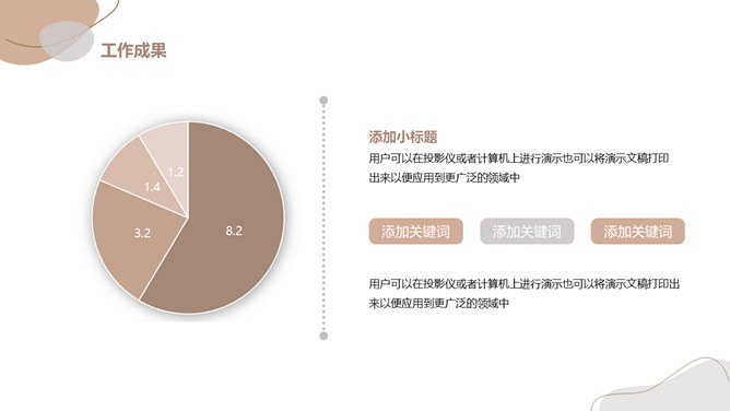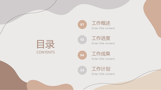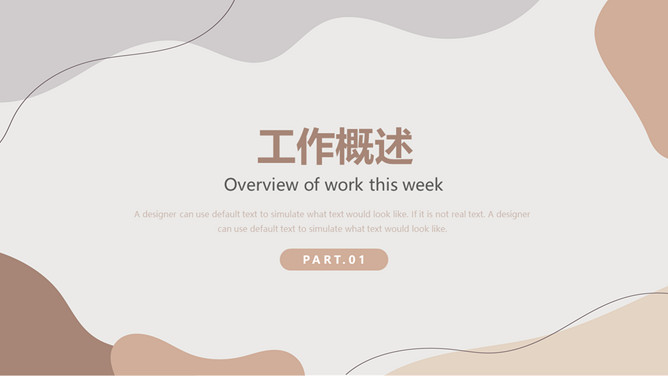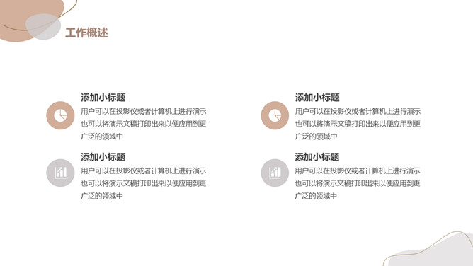 简约莫兰迪色工作总结PPT模板。一套工作总结报告模板,不规则形状背景,棕色莫兰迪色系配色,动态播放效果。