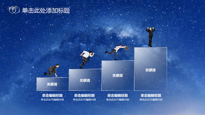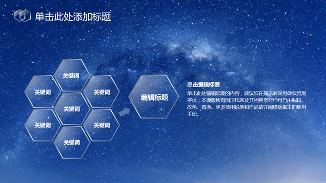 蓝色星空透明玻璃水晶PPT模板
