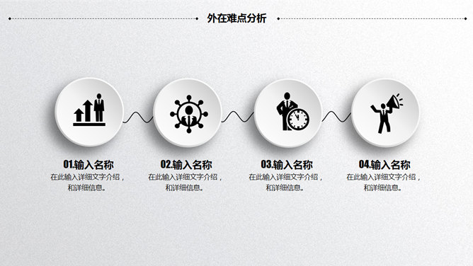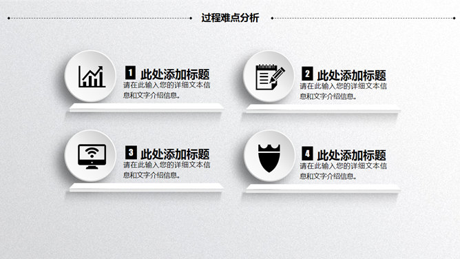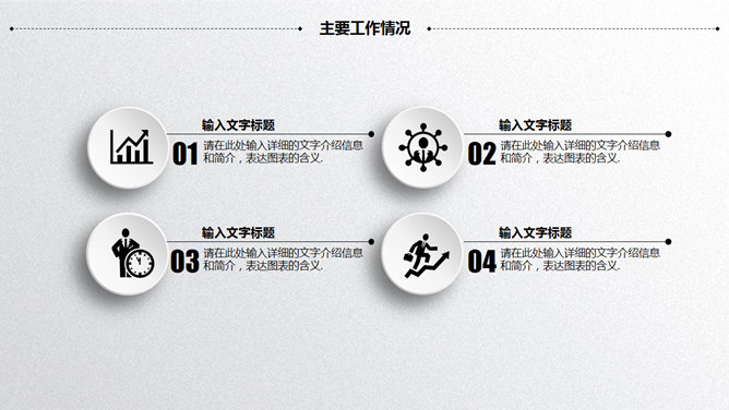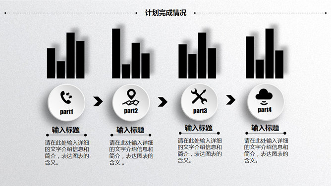 黑灰微立体工作报告PPT模板。一套比较有个性的工作总结报告幻灯片模板,质感渐变灰色背景,纯黑色形状元素,微立体视觉效果,好看的动态播放效果,附带背景音乐。