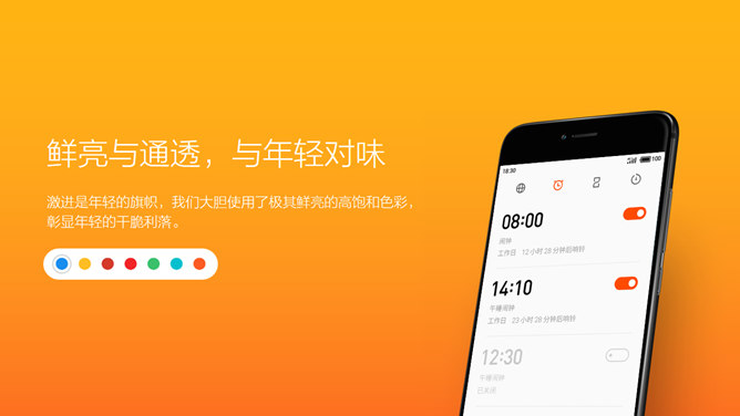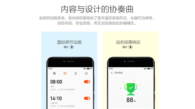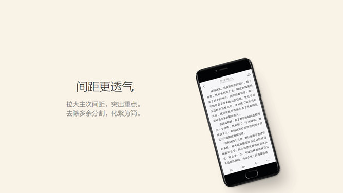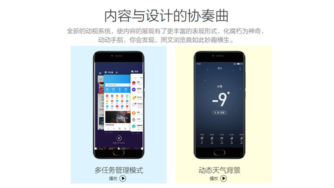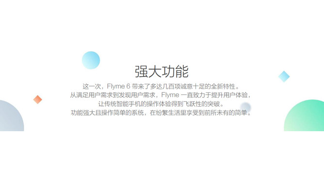 魅族Flyme6系统介绍PPT作品。一套介绍魅族新手机系统Flyme6的作品,介绍了Flyme6的新的功能和特性。简约清新设计风格,稍作修改也可用于其他主题。使用字体:方正兰亭纤黑简体。