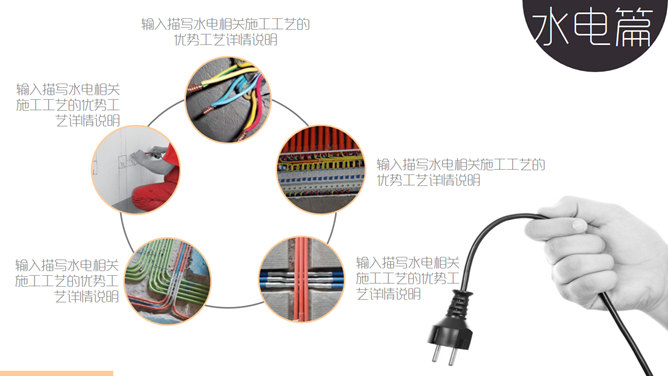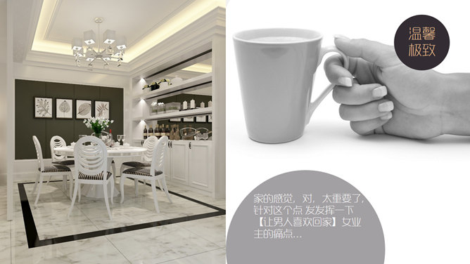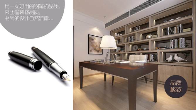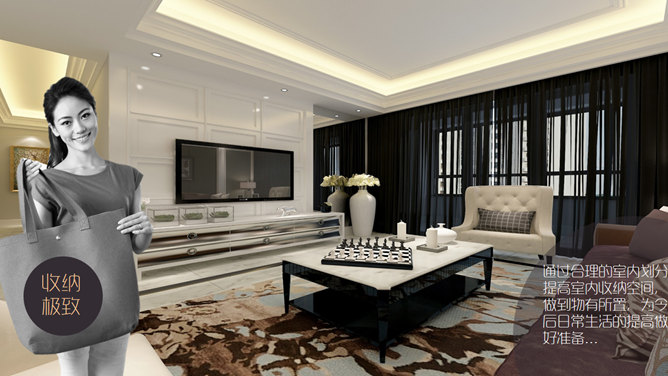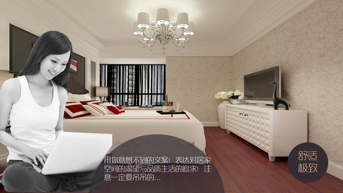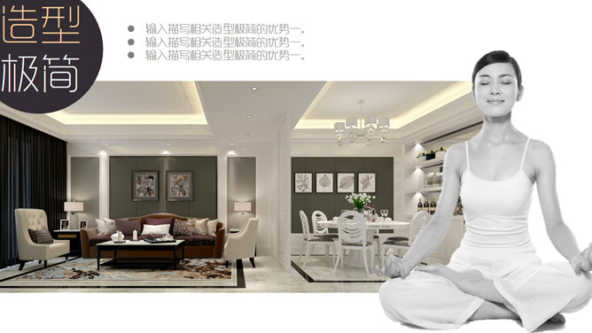 室内设计家居装修展示PPT模板。一套室内设计家居装潢装修展示幻灯片模板,以图片展示页为主,建议安装字体: