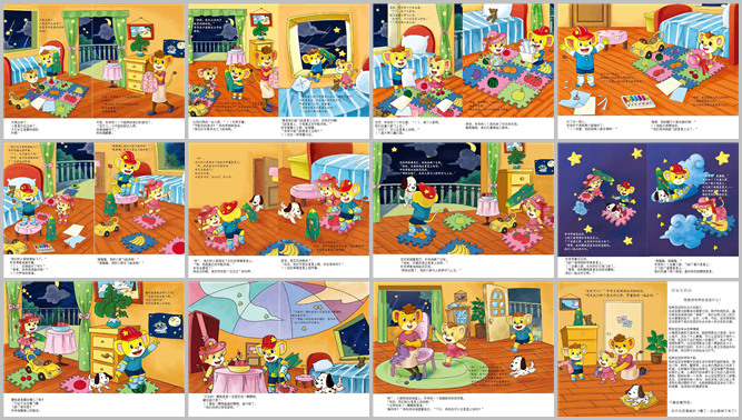 《我想做个宇航员》绘本故事PPT。小星星们出来了,月亮也出来了,天空正是最热闹的时候。丫丫和布奇不能再玩游戏了,妈妈提醒着说:“宝贝们,快睡觉吧,今天就玩到这吧”。丫丫恳求着说:“让我们再玩一会吧!”“玩宇航员游戏呢?那你们可要快点飞回来。”妈妈笑眯眯的说。“要是能飞到星星上去多好啊,那我就是真正的宇航员了。”布奇拿着小火箭说。“怎么能飞到星星上呢?”丫丫也在想办法