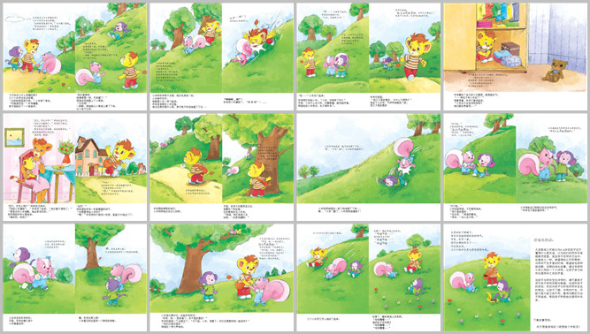 《没关系,你不是故意的》绘本故事PPT。三个小伙伴边走边琢磨玩点什么好玩的。小米想了想说:“去树林搭房子吧。”布奇嚷着说:“我觉得钓鱼更好玩。”,因为他昨天新买一根钓鱼竿。“我们去滑草吧,像化雪一样,可好玩了。”阿迪说完爬上了草坡,一转眼就从草坡上滑下来了。布奇和小米等不及了,他们也想玩滑草。小米张开双手,想要像小鸟一样飞起来。布奇跟在小米后面