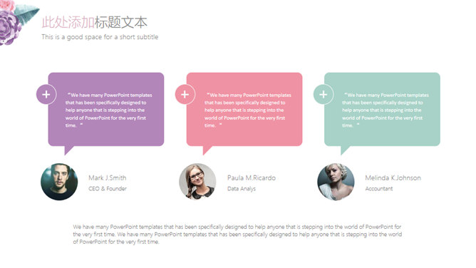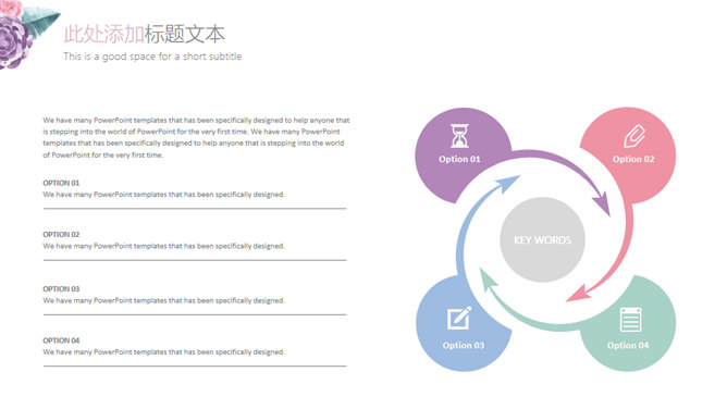 简约小清新水彩花草PPT模板。一套设计简洁的幻灯片模板,小清新水彩花草装饰,图形图表页面丰富,通用性强。