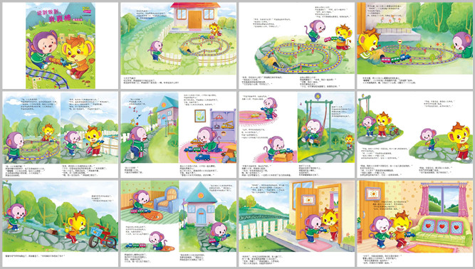 《说到做到,我真棒》绘本故事PPT。今天早上天气特别好,阿迪吃完早饭就高兴的出去玩了。刚到布奇的家门口,阿迪就有了发现,布奇玩什么呢呀?“你在玩什么,布奇?”阿迪好奇的问。“我玩小火车呢呀。”布奇举起他的玩具说,“可好玩了,它还能钻小山洞呢。”阿迪羡慕极了“咱们一起玩吧,布奇。”布奇热情的点头说“好吧,我们一起玩。但是,你得像我这样轻轻的拿着它。”