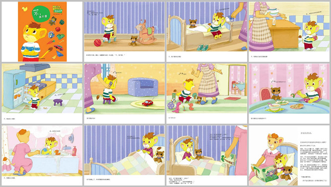 《不,我不要》绘本故事PPT。布奇已经两岁半了。最近他特别喜欢说的一句话是“不,我不要。”不,我不要穿这双鞋子。不,我要自己给花碗洗澡。不,我在找我的小鸡呢。不,我不要玩汽车。不,我不要吃饭。不,我不要吃绿色蔬菜。不,我要自己洗澡。到了晚上,布奇正在等着妈妈给他讲故事。“宝宝,你不要听故事了吧。”“我没说过呀,妈妈。”“你今天总是说不,我早就猜到了。”“妈妈,我不说不了。”