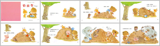 《好朋友》绘本故事PPT。小熊宝宝续本系列14。我想和他们一起玩,可是……,我和你们一起玩好吗。好啊,来吧。小狸猫很害羞,不敢说一起玩。小猪说我也一起玩,好吗。好啊,来吧!小狸猫说我也一起玩好吗,小狸猫的声音太小了,谁也没听见。哇,一起玩吧,大家都变成了小泥人。好朋友们一起玩,真开心