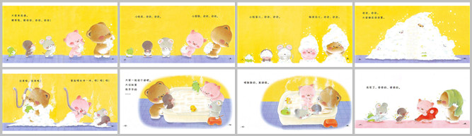 《洗澡》绘本故事PPT。洗澡啦!大家来洗澡,擦香皂,搓泡泡。小肚皮,泡泡。小屁股,泡泡。小脸蛋,脑袋瓜,泡泡。大家都在泡泡里。出来啦,拿起喷头冲一冲。大家一起泡个澡,大浴缸里热乎乎,真舒服。洗完香香、滑滑的。我真喜欢洗澡