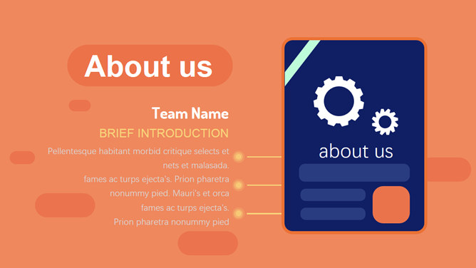 橙色扁平化MBE风格PPT模板。一套采用流行的扁平化MBE风格设计的幻灯片模板,暖色系配色,可爱清新时尚,可用于工作报告演示等用于。使用字体: