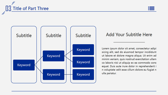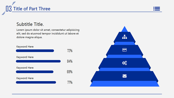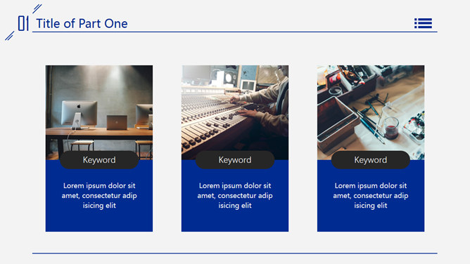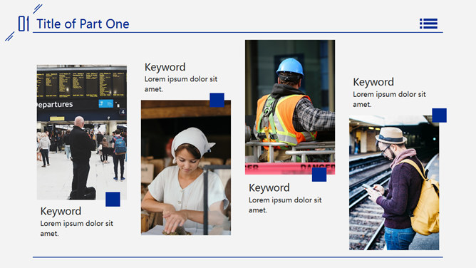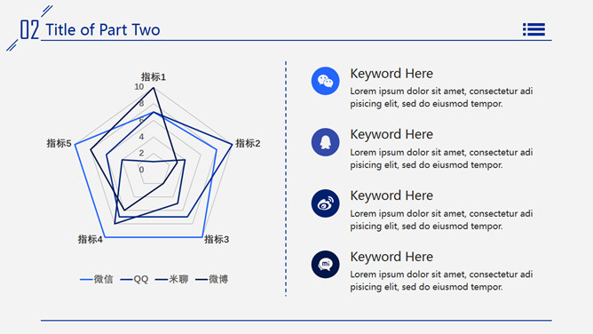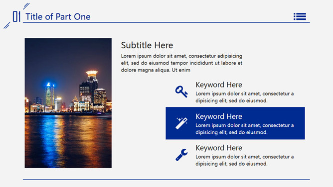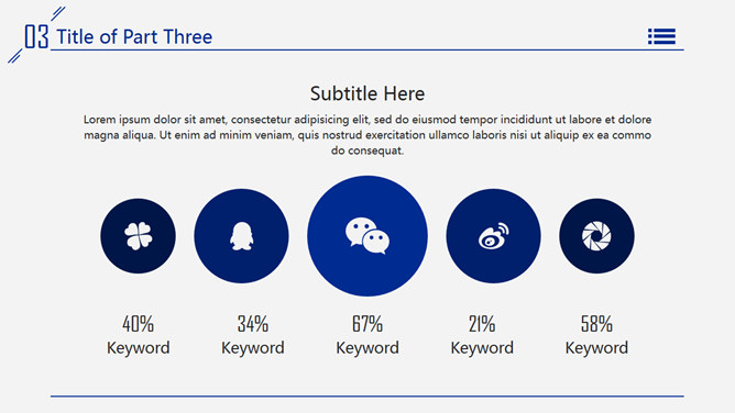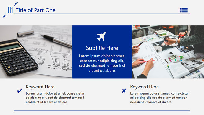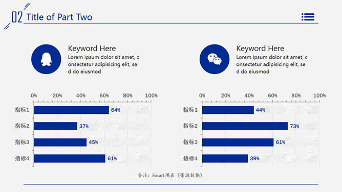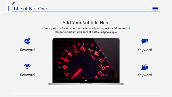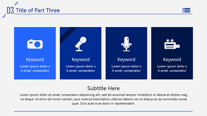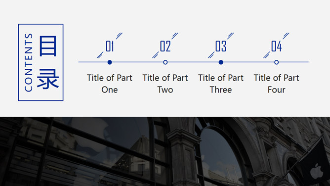 欧美风简约大气深蓝PPT模板。一套设计精美欧美范幻灯片模板,大气扁平化设计风格,深蓝配色,适合商务场合使用。使用字体:Agency FB。