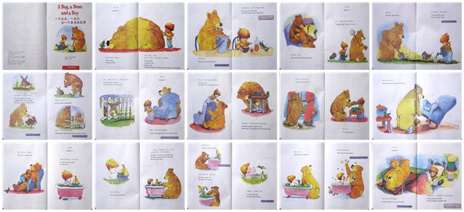 《一只臭虫、一头熊和一个男孩的故事》绘本故事PPT。这是一只很小的臭虫。这是一只很大的胸。这是一个比臭虫大比熊小的男孩。臭虫用瓶盖吃饭。熊用大桶吃饭。男孩用碗吃饭。他们在一起看书。他们一起去田里。熊在翻地,男孩浇水,臭虫播种。种子开始发芽了,熊吧来吃植物的兔子赶跑了。可是兔子又来了,男孩、熊和臭虫一起做了个篱笆