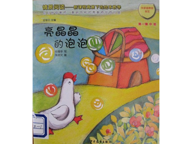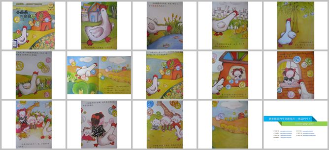 《亮晶晶的泡泡》绘本故事PPT。从前,有一只大白鹅,它特别想找个朋友玩。大白鹅来到小河边,看见一群鱼摇着尾巴在水里游。他来到菜地里,看到一群小鸡眨眨眼睛走开了。他来到树下,看到一群小鸟拍拍翅膀飞走了。突然一串泡泡从天上飞下来在大白鹅的头上转圈。他很高兴,用嘴巴接泡泡,可就是接不住。大白鹅开始追泡泡,来到一个山坡前,泡泡在他的翅膀下一托,大白鹅竟然飞起来了