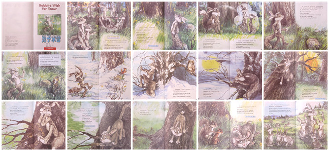 《兔子求雪》绘本故事PPT。在很久以前,兔子长的和现在不一样。他们有这毛茸茸、长长的尾巴,还有又直又长的腿和胳膊。春天来了,冰雪融化了,兔子跑出来玩。他看到树上长出了嫩芽,他很想吃,可是他不会爬树。他还想在雪地里玩,可是没有雪了,这时他想起了奶奶说的话。奶奶说,如果你非常非常想要一个东西,愿望就会实现,于是兔子开始又跳又唱。我希望下雪,希望雪花快点落下来