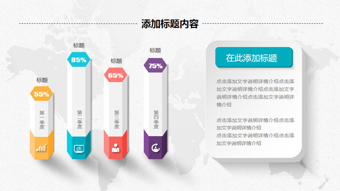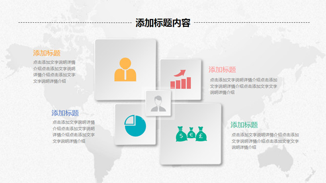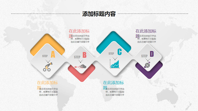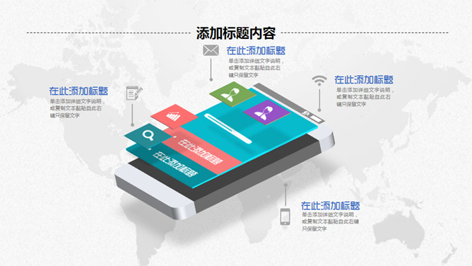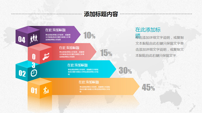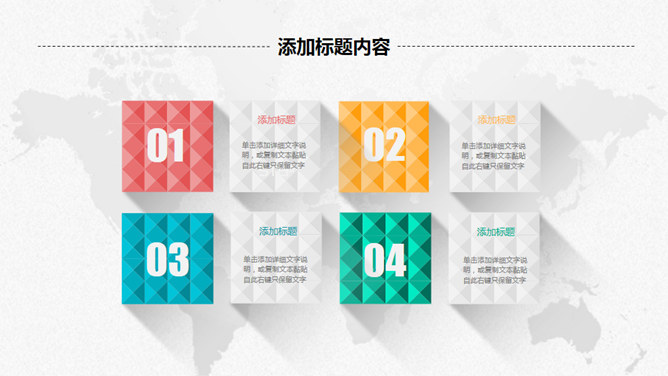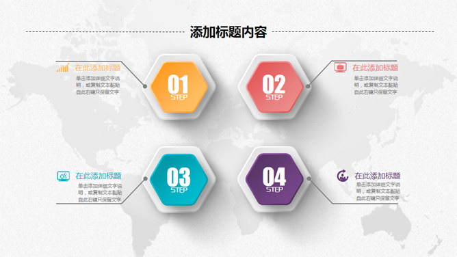 精美微立体商务汇报PPT模板。一套精美微立体风格商务汇报通用幻灯片模板,清新多彩配色,世界地图背景,炫酷动态播放。建议使用字体: