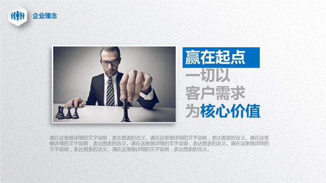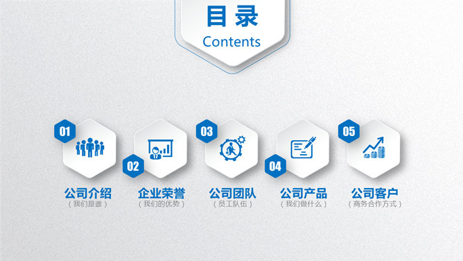 公司介绍产品宣传PPT模板。一套产品宣传公司简介幻灯片模板,微立体视觉效果,渐变灰色背景,大气蓝色主色调。