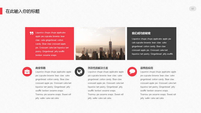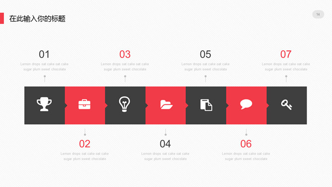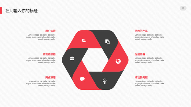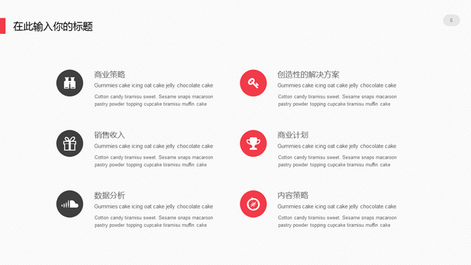 极简设计多功能通用PPT模板。一套大方极简设计幻灯片模板,浅灰色背景,黑红配色,多图形图表页面,通用性强。
