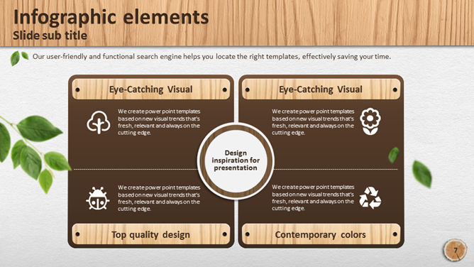 淡雅清新花朵叶子PPT模板