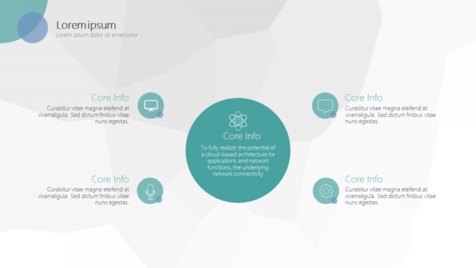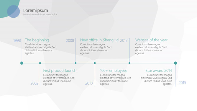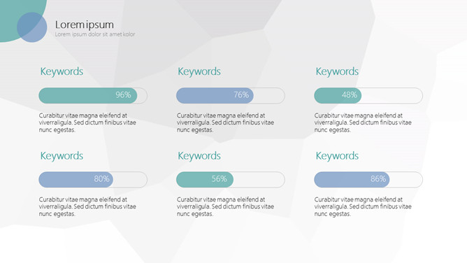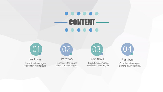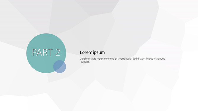 简约商务汇报通用PPT模板。一套简约通用幻灯片模板,灰色低面多边形背景,圆圈圆形装饰,通用性强。