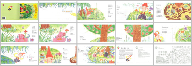 《花园里有什么》绘本故事PPT。猜猜看,花园里能看到什么,看不到什么,不用猜,花园里能看到金盏菊、丁香花、小椰子树,还有很多,太多了,都说不完。花园看不到的有凉凉的威风,花草的清香,还有我就不知道了,因为我没看到啊,怎么能知道?把花园里的土翻看看看有什么?哇,有草的根,树的根,还有蚯蚓挖的隧道,睡觉的小蝉,小蚂蚁的家和蛋,还有多的说不完