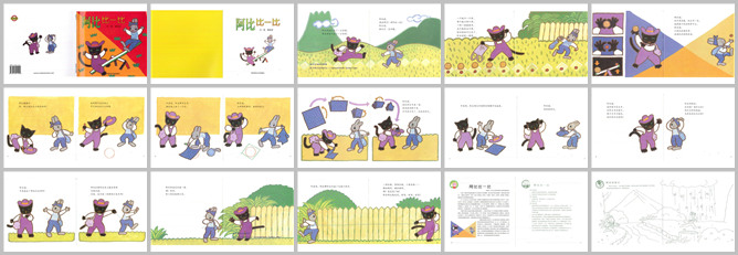 《阿比比一比》绘本故事PPT。阿吉到东山采了一小袋李,阿比到西山采了一大袋梨。阿比说:咱们比一比谁采的多。阿吉说:没问题。一个李子一个梨,两个李子两个梨,一对一对排整齐,五个李对五个梨。阿比的袋子已经都空,阿吉还有很多李呢。阿比说:比多你赢了,比大就不一定了,因为我的栗子比你的李子大。阿吉说:咱们已经必过李和梨了,咱们再比比别的东西吧