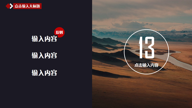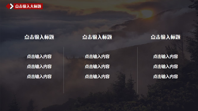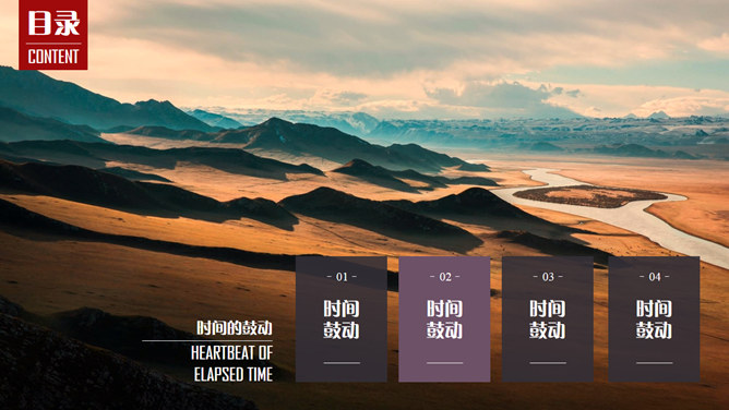 壮阔美景大图杂志风PPT模板。一套好看的杂志风幻灯片模板,壮阔风景美景图片背景,创意排版布局。使用字体: