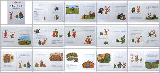 《大兔子,胆小鬼》绘本故事PPT。人人都有自己特别害怕的东西,这是很正常的,不需要感到羞耻。那么你害怕什么呢?夏天的一天,太阳在蓝蓝的天空上,小鸟欢乐的唱歌,微风吹拂着大地,一只胖苍蝇在草地上又跳又蹦。等等,一只胖苍蝇在草地上蹦跳?胖苍蝇砰的一声。蹦蹦吓了一跳“啊,你闹什么呢?”“哈哈,我是大肥苍蝇啊,我要吃掉你。”跳跳说。“我刚才把化妆舞会的衣服找出来了。”跳跳把面具摘下来说