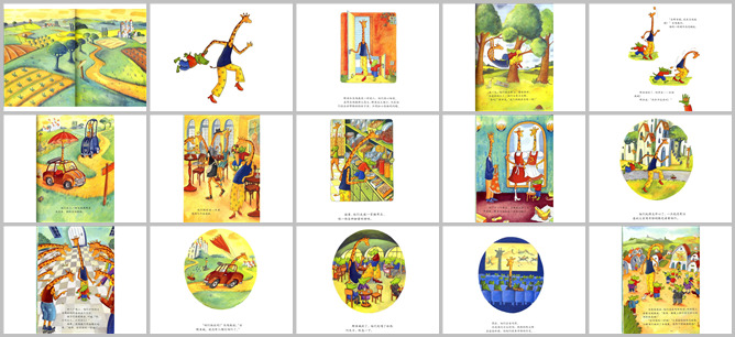 《天生一对》绘本故事PPT。长颈鹿和鳄鱼是一对真心相爱的爱人。虽然鳄鱼很矮小,长颈鹿很高大,但他们住在很特别的房子里,不用担心高矮的问题。一天,他们挂在树上玩,但是一会他们就觉得无聊了。鳄鱼说:我们去城里逛逛吧。“我们是去鳄鱼城还是去长颈鹿城呢。”她高高的抛起了一枚硬币。鳄鱼把硬币接住,一看是长颈鹿城。“把车开过来把。”鳄鱼说。他们开车去了长颈鹿城