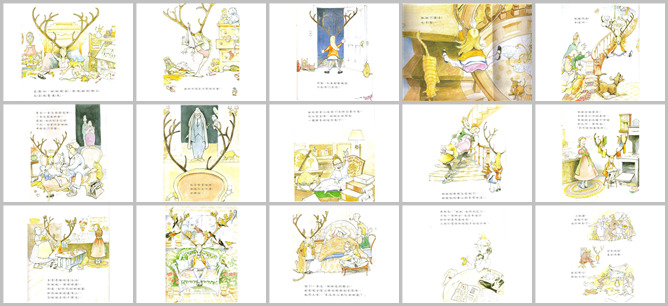 《妞妞的鹿角》绘本故事PPT。星期四的时候,妞妞从睡梦中醒来,突然发现她的头上长出了两个鹿角。她好不容易才把衣服穿好,然后出门的又费一番功夫。妞妞下楼去吃早餐。鹿角卡在了吊灯上,卡在了半空中。医生摸摸这,戳戳那,抓抓自己的下巴,实在没看出来哪里出问题了。校长瞪着妞妞,想不出好办法。她的弟弟拿着百科全书查看,然后向大家宣布说,妞妞变成了稀有的迷你鹿了