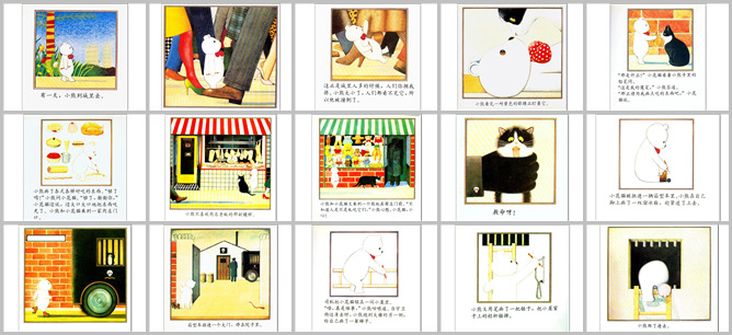 《小熊进城》绘本故事PPT。一天,小熊去城里。城市里的人太多了,你挤我我挤你,小熊太小,人们都看不见他,他被挤倒了。突然,小熊看见一双黄色的眼镜盯着他。原来是一只小花猫,小花猫看着小熊的铅笔说:那是什么。这是我的魔笔呀,小熊回答。那你给我画点好吃的好吗,小花猫说。小熊给小花猫画了各种各样好吃的。够了吗,小熊问。够了,够了,谢谢你,小花猫说
