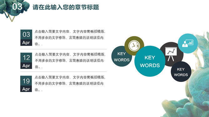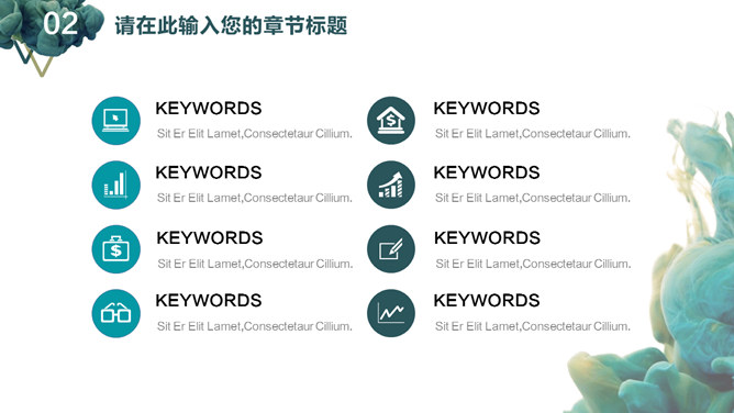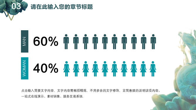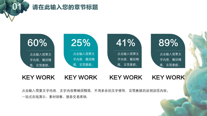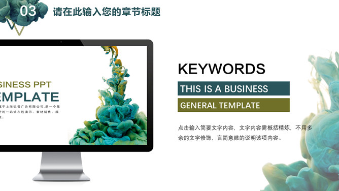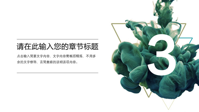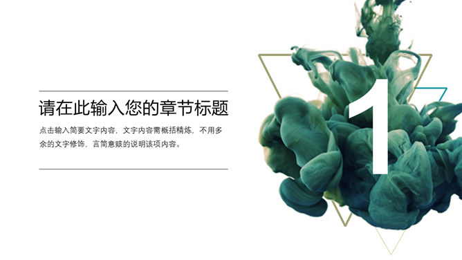 创意颜料入水艺术设计PPT模板。一套艺术设计幻灯片模板,创意颜料入水效果背景,通用性强。建议安装字体: