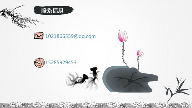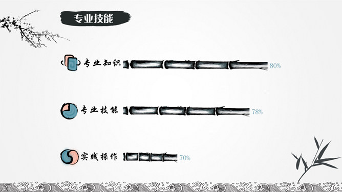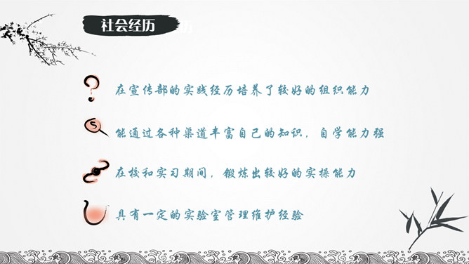 水墨山水个人简历PPT模板。一份个人简历幻灯片模板,水墨山水中国风格设计。建议安装字体: