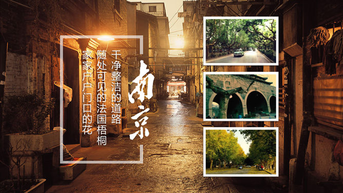 南京印象南京介绍PPT模板。一套介绍南京的PPT作品,介绍了南京的市树、美食、旅游景点等。建议安装字体: