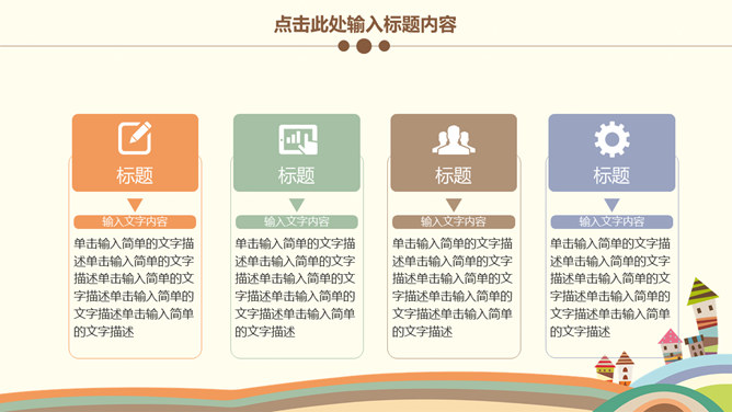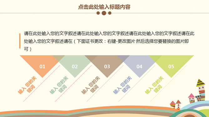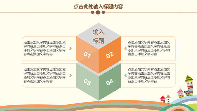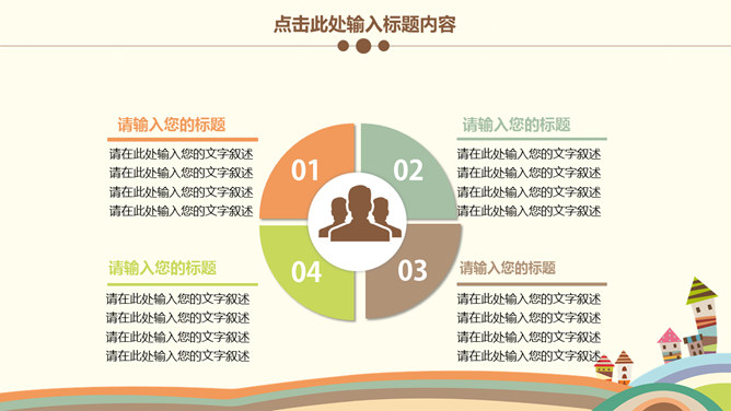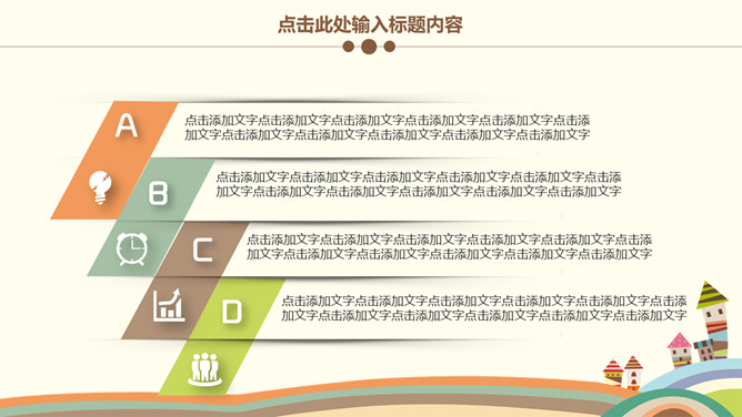可爱卡通儿童教育说课PPT模板。一套卡通风格幻灯片模板,以可爱卡通儿童为背景,适合儿童教育教学、说课等用途。