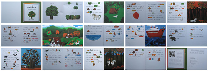 《小马小熊和苹果树》绘本故事PPT。这是一棵树,一棵树加上另一棵树,加上许多的树,就形成了树林。在树林的中央有一块草地,在开着花朵的草丛中有一座木屋,这座木屋的后面有一颗苹果树。这里生活着一匹小马。每当秋天的时候,当树叶从树上纷纷从树上落下的时候,那些苹果页落到了草丛里。小马就开始放开肚皮吃苹果了,直到把肚子吃的像一个鼓胀的气球。突然,一天早晨,所有的苹果都消失了