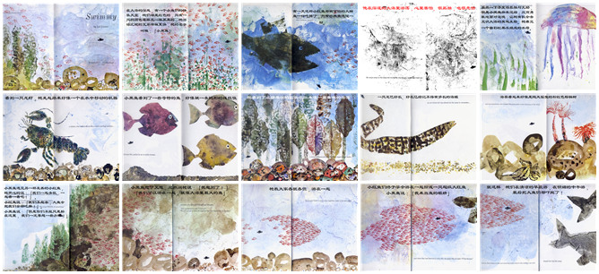《小黑鱼》绘本故事PPT。在大海深处,有一群快乐的小鱼,他们都是红色的,只有一只是黑色的,他比别人游的都快,他叫小黑鱼。一天,这群小红鱼被一只大鱼吃掉了,只有小黑鱼逃走了。他在大海里独自游荡,很害怕,很孤独。但是他并没有退缩,他向大海深处游去,见识到了很多大海的其他生物。看见了一个彩色果冻组成的水母。还看到了一只大龙虾,就像在水里移动的机器