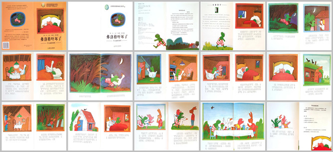 《弗洛格吓坏了》绘本故事PPT。弗洛格躺在床上,听着四周传来的阵阵怪声,被吓坏了。地板上还有沙沙声,柜子里有咔咔声。弗洛格害怕的想:肯定有人躲在我的床底下。他从床上跳下来,一口气穿过漆黑的树林,来到小鸭家门口。小鸭说:你来看我真好,但是太晚了,我正要睡觉呢。弗洛格说:求你了,小鸭,我很害怕,我的床底下有个鬼。小鸭大笑着说:乱说,世界根本没有鬼