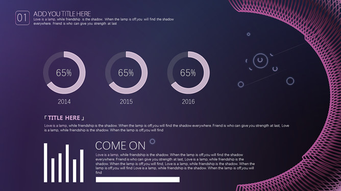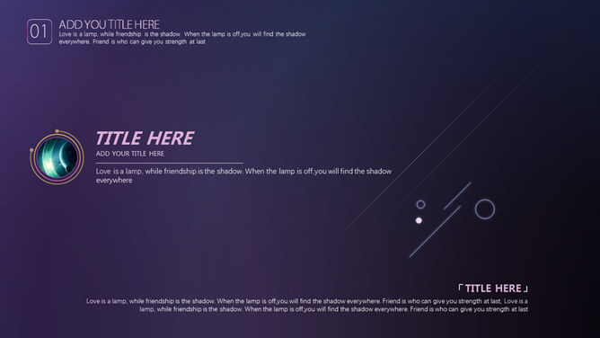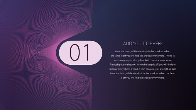炫酷空间网状科幻科技PPT模板。一套科技科幻风幻灯片模板,空间网状效果设计,深紫色调,炫酷动态播放效果。
