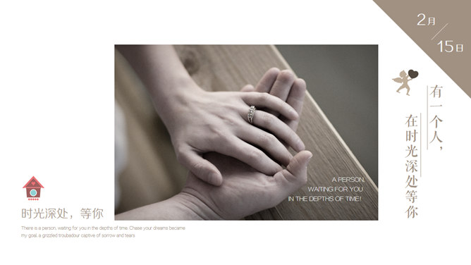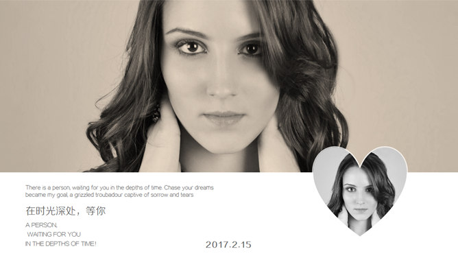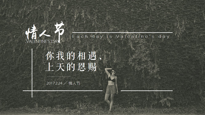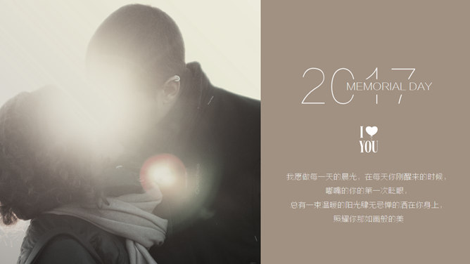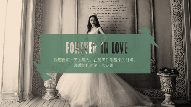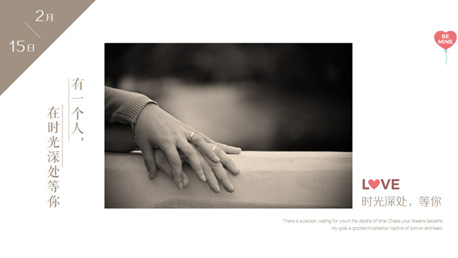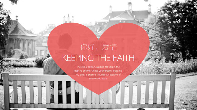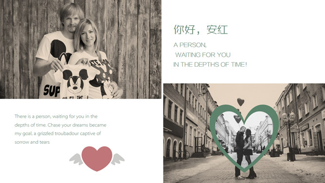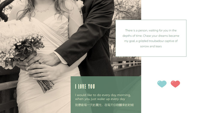 文艺爱情图文排版PPT模板。一套爱情主题幻灯片模板,文艺范图文排版,使用字体: