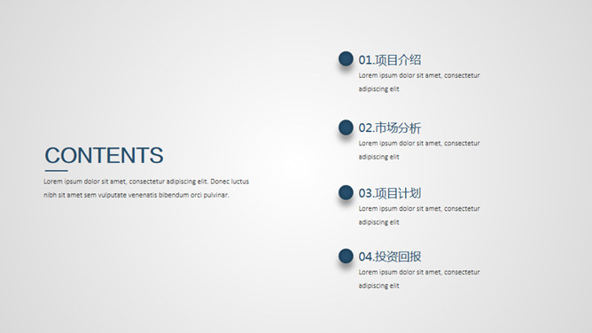 简约质感商业计划书PPT模板。一套商业创业计划书幻灯片模板,灰色渐变背景,质感形状图形元素,简约大气。