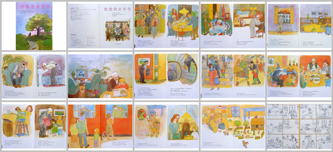 《我爱我的爷爷》绘本故事PPT。爷爷一个人住在乡下,爸爸妈妈让爷爷来城里和我们一起住。今天我们都去火车站接爷爷。爷爷到了,带着一把旧伞和一个大行李箱。到家了,爷爷坐在了爸爸的座位,可是爸爸没有生气。好多爸爸不让我们做的事,爷爷都可以做。就连吃饭的时候爷爷也可以大声吃东西,把嘴巴塞的满满的一边说话都没关系。爷爷不用卫生纸一个手就能擤鼻涕