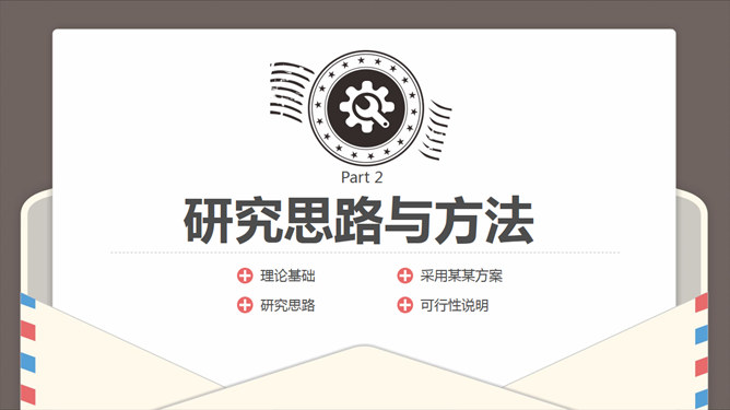 创意信件毕业设计答辩PPT模板。一套毕业设计论文答辩幻灯片模板,简约清新,信件信封效果设计,很有创意。