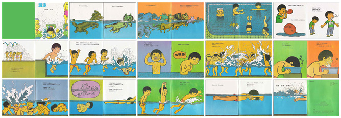 《游泳》绘本故事PPT。狗用狗刨式游泳。猫也用狗刨式游泳。为什么大部分动物都会游泳呢?因为大部分动物的能附在水面上。人的身体能浮在水面上吗?你可以在浴池里试试,放松身体,脚和手就会浮起来。人和动物的身体就像气球,气球装满空气就会浮在水面上。人的肺里吸进空气就像游泳圈一样让我们浮在水面上。来吧,我们到游泳去联系吧,先玩冲水游戏,满头水也不怕