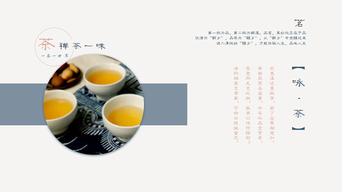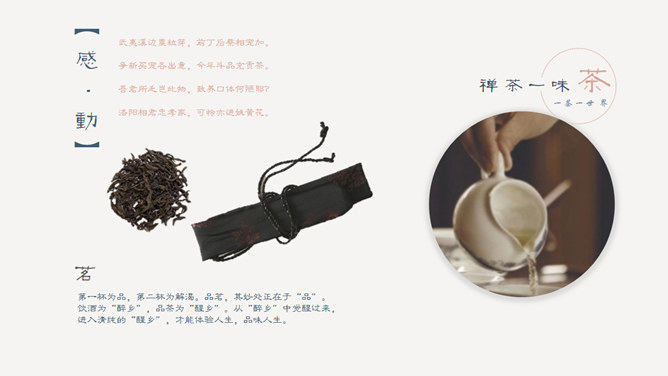 禅意茶艺茶道茶文化PPT模板。一套茶叶茶艺茶道茶文化主题幻灯片模板,古韵禅意中国风格设计,另附茶叶素材。