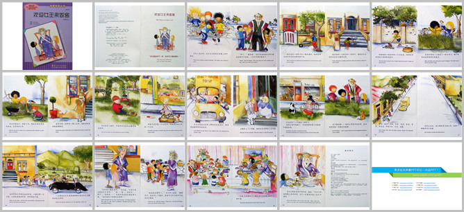 《欢迎女王来做客》绘本故事PPT。今天女来要来参加午餐会,多让人高兴啊。镇长说:我们应该打扫的干干净净,不留一片树叶。哈利领到一辆手推车和一把铲子,他的任务是清理所有的角落。波比领到一把刷子和一只簸箕。她的任务是清扫楼梯台阶。汤姆领到一个垃圾袋和一把扫帚,他的任务是清扫落叶。茉莉和米莉都领到了一把大剪刀。她们的任务是修剪薰衣草篱笆