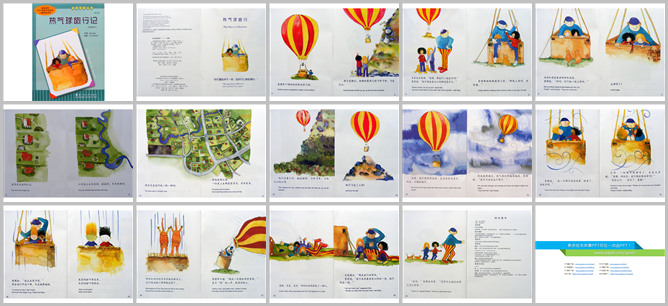 《热气球旅行记》绘本故事PPT。查理有个条纹热气球。每到周末,他都坐着热气球飞过大山。茉莉说:我们也想看看大山那边什么样。茉莉央求说:带我们一起去好吗。查理帮她们爬进热气球:那就上来坐好吧。她们看了看淘淘和咪咪,查理说:那就都上来吧。太神奇了,屋顶是红色的,小河蓝蓝的,弯弯曲曲的。大树笔直一排一排的。绿绿的草地,一切都井井有条,整整齐齐。他们沿着小河,越过树林