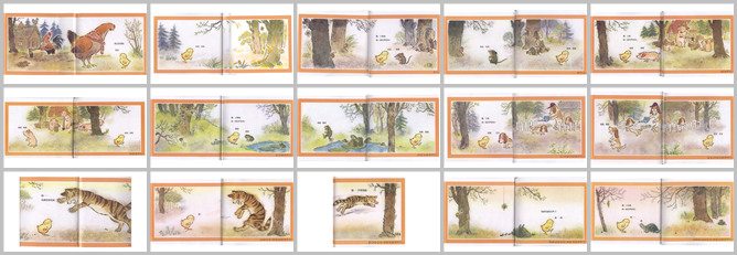 《换一换》绘本故事PPT。小鸡和妈妈说:我出去玩了,叽叽。小老鼠,我们换一换叫声好吗?叽叽,吱吱。小猪,我们换一换叫声好吗?吱吱,哼哼。小青蛙,我们换一换叫声好吗?哼哼,呱呱。小狗,我们换衣叫声好吗?呱呱,汪汪。喵,我要吃掉你!汪!喵,吓死我了。我跟花猫换叫声了,喵喵。小乌龟,我们换一换叫声好吗?嗯,喵。哎,这孩子是怎么了